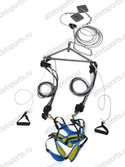 Тренажер оснащен подвижной кареткой с роликами, трапецией с вращающимся блоком, талрепом кольцо-крюком для поднатяжки троса, стальной кареткой с роликами, эластичными тягами и материалом изготовления строп синтетическим материалом.