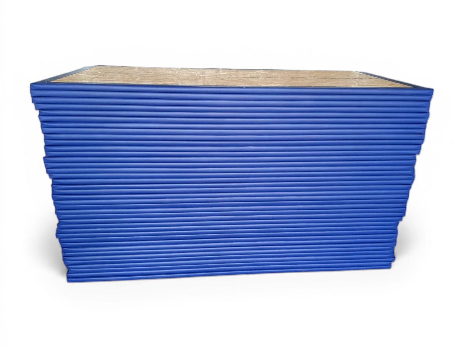 Внешний слой протектора выполнен из плотной ткани тент ПВХ, что обеспечивает высокую прочность и долговечность изделия. Стандартное исполнение представлено в синем цвете, однако возможно изготовление в других цветах по согласованию.