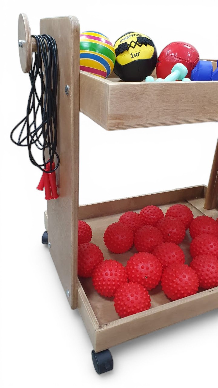 Тележка для спортивного инвентаря на колесиках с удобными ручками - это функциональный и удобный аксессуар для хранения и перевозки спортивного оборудования.
