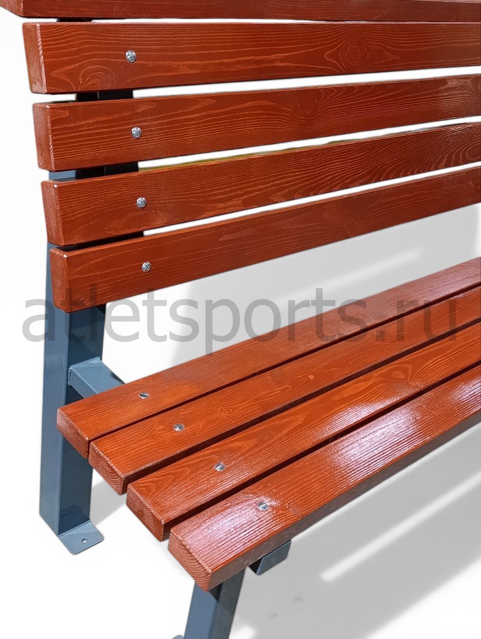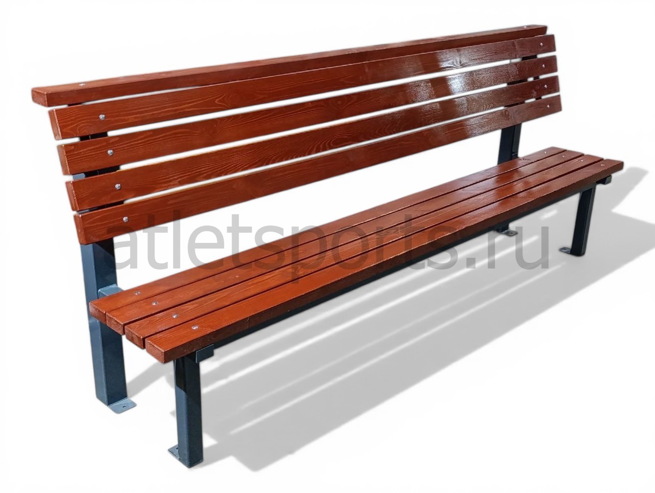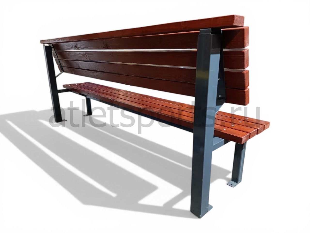 Сиденье и спинка выполнены из массива хвойных пород (брус сечением 90х45 мм), Спинка парковой скамьи обеспечит комфорт и поддержку для спины.