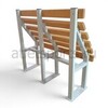 Каркас скамьи выполнен из профильной трубы 60×40 мм и покрыт полимерно-порошковым покрытием, обеспечивающим долговечность и стойкость к внешним воздействиям. Обшивка скамьи выполнена доской 90×40 из массива хвойных пород дерева (может быть из лиственницы, сорт А по согласованию) с покрытием маслом в два слоя, что придает продукту эстетичный внешний вид и защищает дерево от влаги и повреждений.