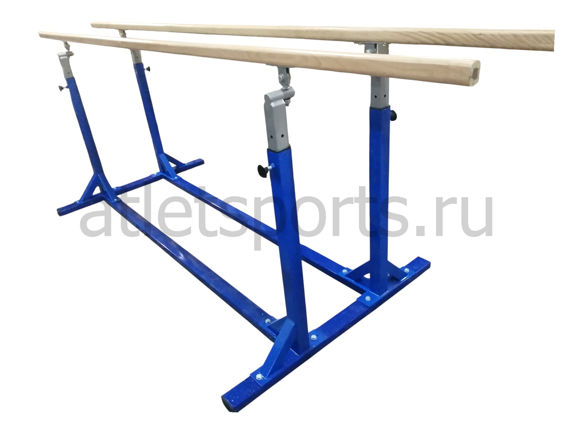 Брусья гимнастические мужские массовые на стальной раме с деревянными поручнями - это надежное и прочное оборудование, предназначенное для проведения массовых гимнастических тренировок.