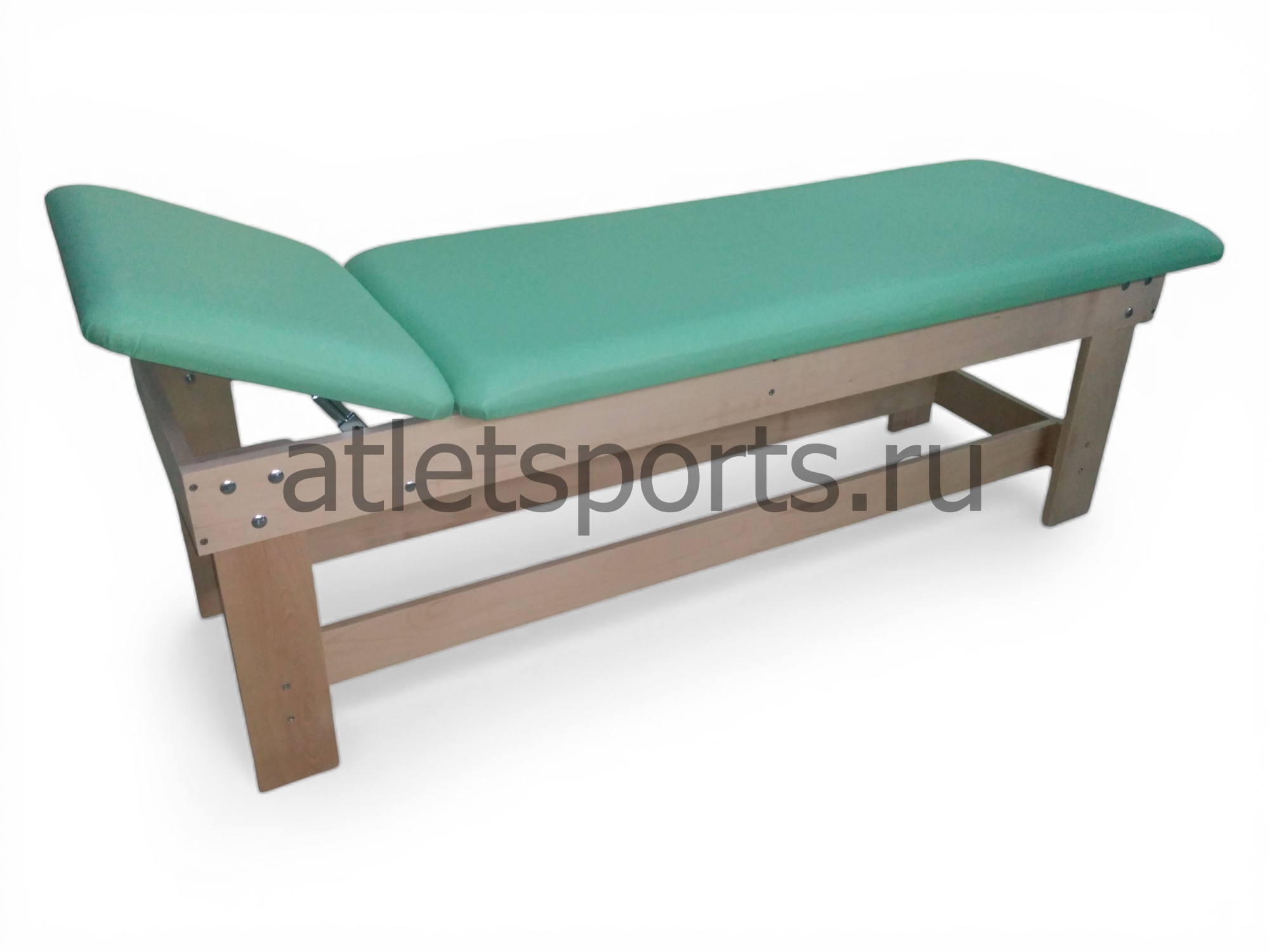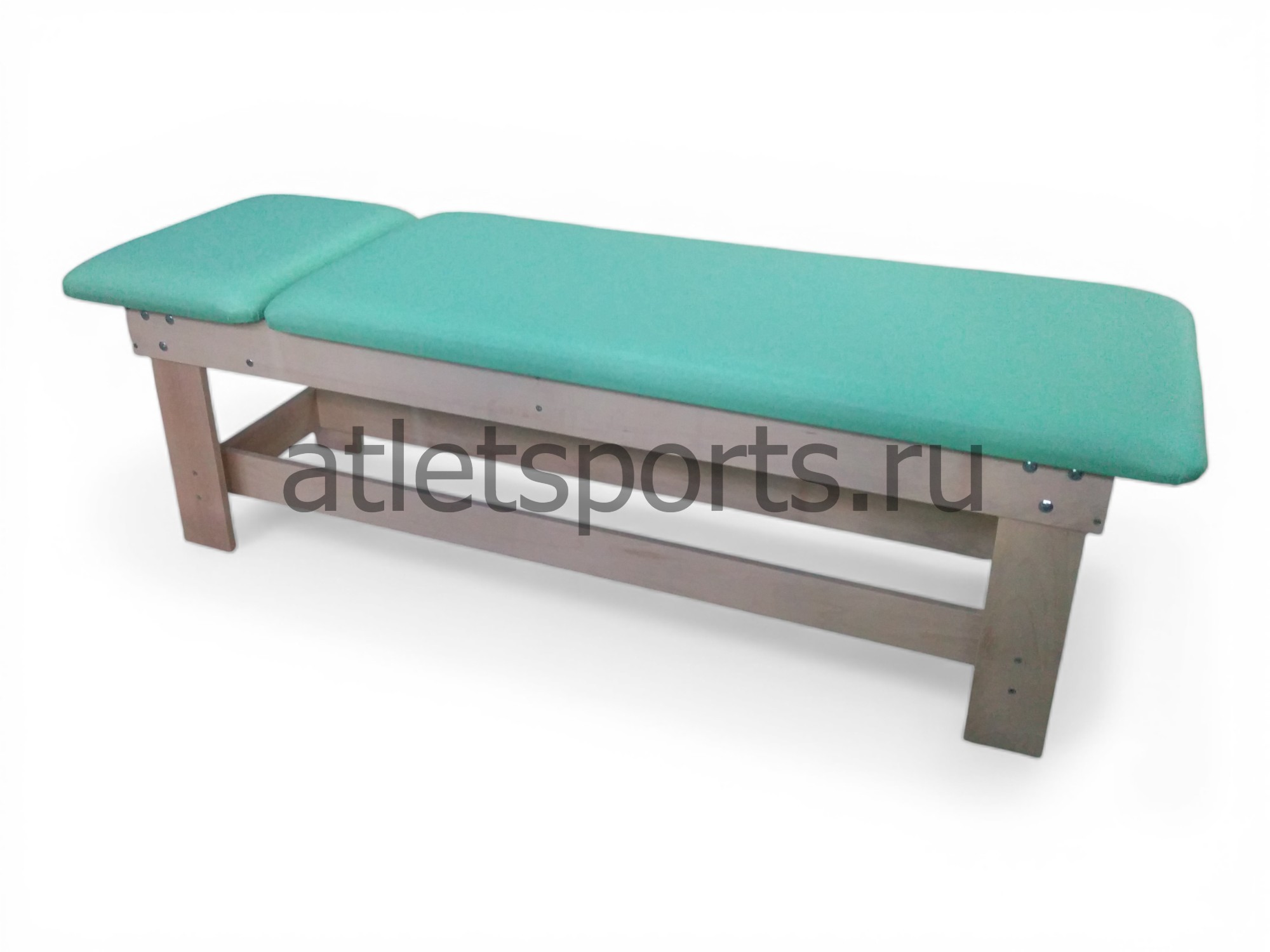 Основание кушетки выполнено из массива бука с лаковым покрытием на водной основе, что делает материал безопасным и стойким. Такое покрытие не выделяет вредных веществ, что важно для медицинских центров. Ложе и подголовник обтянуты качественной искусственной кожей, а наполнитель выполнен из поролона для дополнительного комфорта. Цвет обивки можно выбрать по предварительному согласованию.