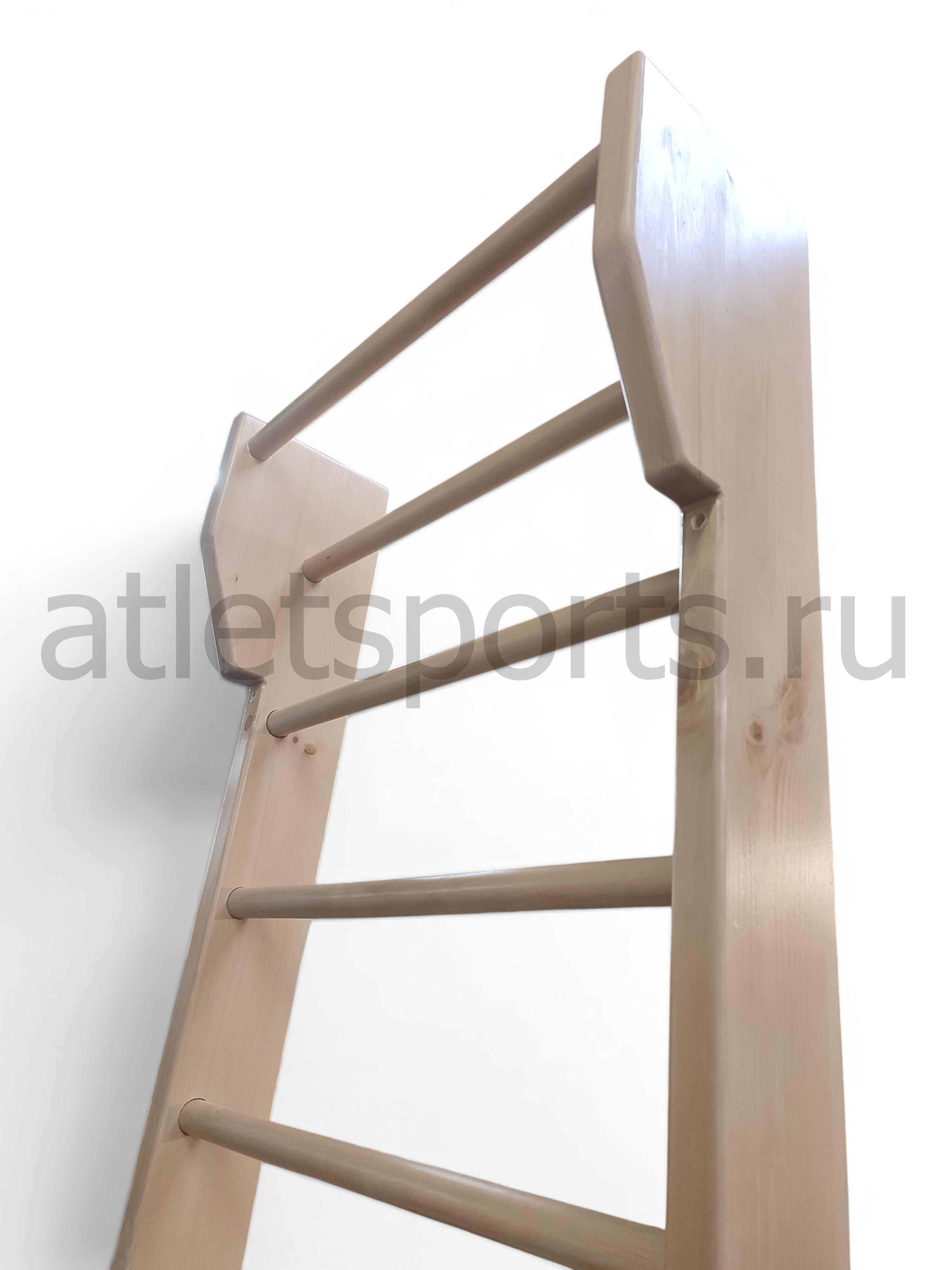 Перекладины шведской стенки выполнены из цельного массива березы категории «А» диаметром 38 мм. В соответствии с ГОСТом перекладины выполнены из бессучкового материала высшей категории, с ЗАЩИТОЙ ОТ ПРОВОРАЧИВАНИЯ.