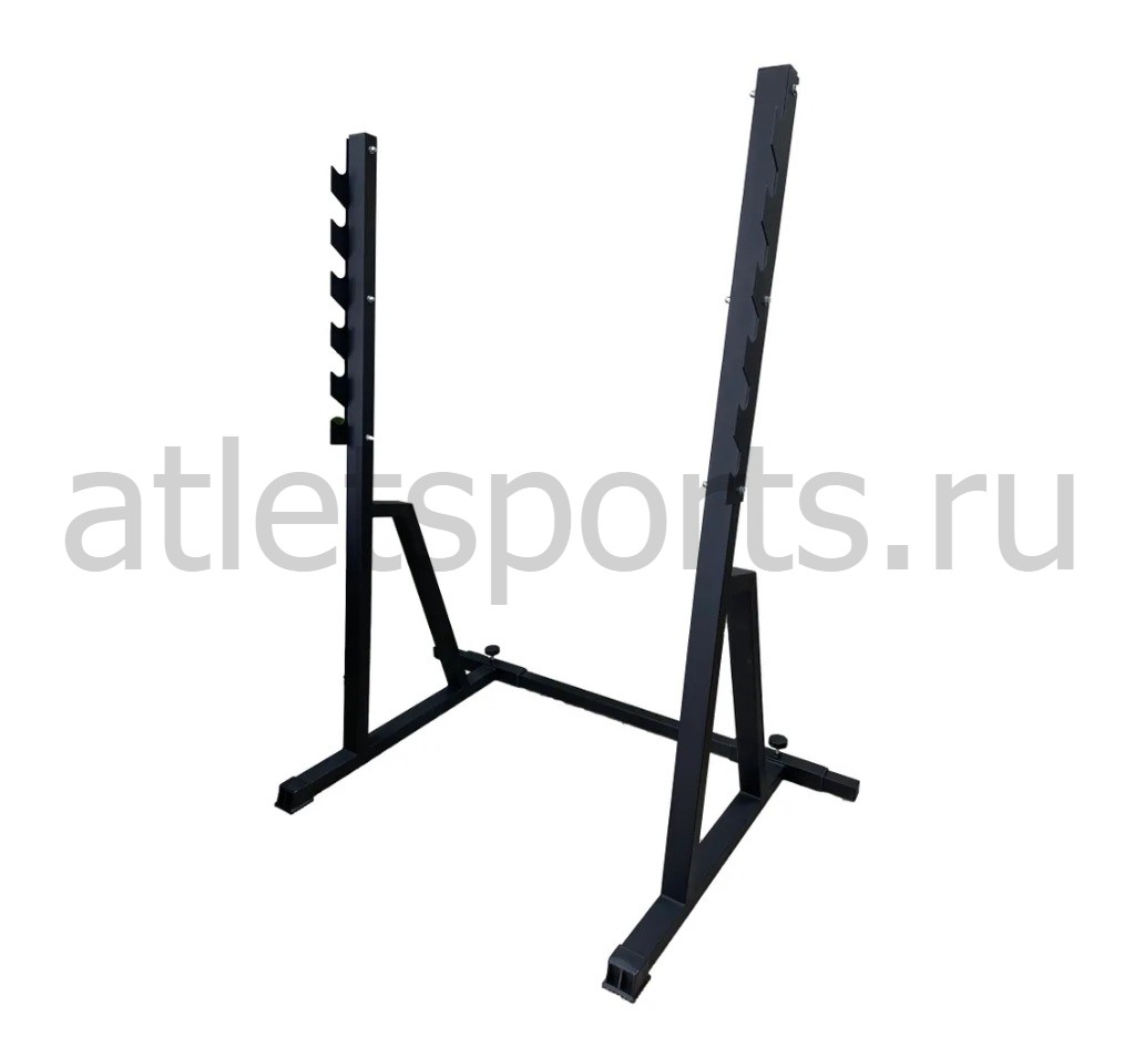 - Прочная конструкция: Изготовлена из высококачественных материалов, стойка обеспечивает надежную поддержку для штанг, выдерживая значительные нагрузки.